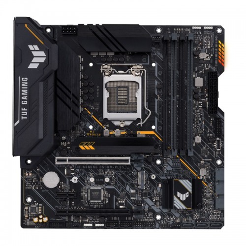 Brand - Asus, Model - Asus TUF GAMING B560M-PLUS, Chipset Brand - Intel, Chipset - Intel B560, CPU Sockets - LGA1200, Supported CPU - 11th Gen: Intel Core Processors & 10th Gen: Intel Core, Pentium Gold and Celeron Processors, Generation - 10th/11th Gen, Memory Type - DDR4, Memory MHz - 5000(OC)/ 4800(OC)/ 4600(OC)/ 4400(OC)/ 4266(OC)/ 4000(OC)/ 3733(OC)/ 3600(OC)/ 3466(OC)/ 3333(OC)/ 3200/ 2933/ 2800/ 2666/ 2400/ 2133 MHz, Memory Channel - Dual, Memory Slot - 4, Memory Max. - 128GB, Graphics - Integrated Graphics, PCI Express Slot - 1 x PCIe 4.0/3.0 x16, 1 x PCIe 3.0 x16 slot, 1 x PCIe 3.0 x1, Storage Interface - 6Gb/s, M.2 Slot - 2 x M.2 slots (1x M.2, type 2242/2260/2280), (1 x M.2, type 2242/2260/2280 (supports PCIe 3.0 x4 & SATA)), LAN Chipset - Realtek GbE LAN, LAN Speed (Mbps) - 10/100/1000/2500 Mb/s, Audio Chipset - Realtek ALC897, Audio Channel - 7.1 Channel, USB Port - 2 x USB 3.2 Gen 2 Type-A, 2 x USB 3.2 Gen 1 Type-C, 2 x USB 3.2 Gen 1 Type-A, 6 x USB 2.0 Type-A, HDMI Port - 1, DisplayPort (DP) - 1, SATA Port - 6, BIOS Type - 128 Mb Flash ROM, BIOS Model - UEFI AMI BIOS, Thunderbolt - 1, COM Port - 1, RGB Support - Yes, RGB Sync - Aura Sync, RGB Connector - 2 x AURA RGB header, Form Factor - microATX, Supported Operating System - Windows 10, Special Features - Intel B560 (LGA 1200) mATX motherboard with PCIe 4.0, two M.2 slots, 8+1 Power stages, Realtek 2.5Gb Ethernet, DisplayPort 1.4, HDMI 2.0, USB 3.2 Gen 2, USB 3.2 Gen 1 Type-C, Thunderbolt 4 support, Aura Sync RGB Lighting, Addressable RGB, Two-way AI Noise-Cancelation: Reduce background noise from the microphone and audio output for crystal-clear communication in games or video conferences, ASUS OptiMem II: Careful routing of traces and vias to preserve signal integrity for improved memory stability, Others - 1 x 4-pin CPU Fan header(s) 1 x 4-pin CPU OPT Fan header(s) 2 x 4-pin Chassis Fan header(s), 1 x 24-pin Main Power connector 1 x 8-pin +12V Power connector, 1 x Clear CMOS header, 2 x AURA Addressable Gen 2 header, 1 x Front Panel Audio header, 1 x Realtek 2.5Gb Ethernet port 5 x Audio jacks 1 x Optical S/PDIF out port,, Warranty - 3 Year Replacement