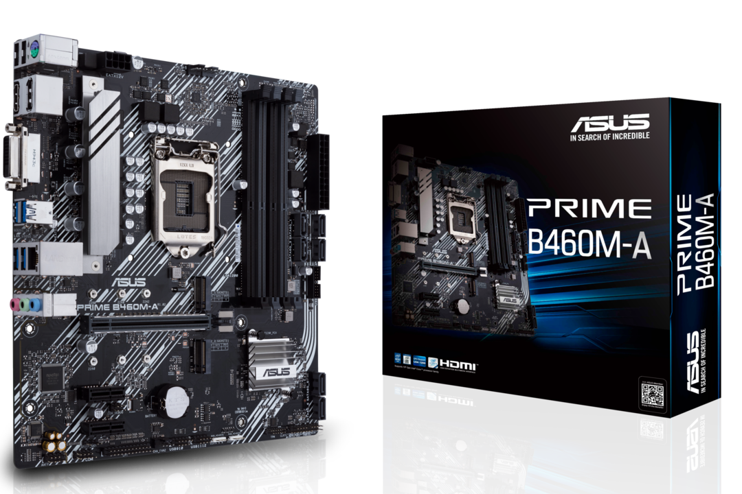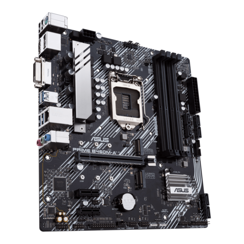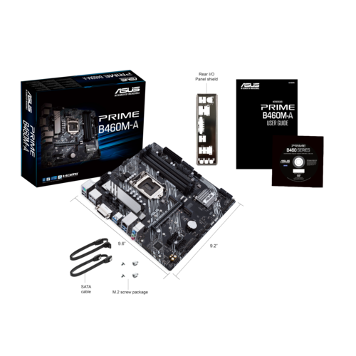 Model - Asus PRIME B460M-A, CPU Sockets - LGA1200, Chipset - Intel B460, Supported CPU - 10th Generation Intel Core i9/ i7/ i5/ i3/ Pentium Gold/ Celeron Processors, Generation - 10th, Memory Type - DDR4, Memory MHz - 2933/ 2800/ 2666/ 2400/ 2133 MHz, Memory Slot - 4, Memory Max. - 128GB, Optane Memory Support - Yes, Graphic - Integrated Graphics, Multi-GPU Support - No, PCI Express Slot - 1 x PCI Express x16 slot, running at x16, 2 x PCI Express x1, Storage Interface - 6Gb/s, M.2 Slot - 1 x M.2 Socket 3 (M Key type 2242/2260/2280 storage devices support (SATA & PCIE 3.0 X2 mode)), LAN Chipset - Realtek RTL8111H, LAN Speed (Mbps) - 10/100/1000, Audio Chipset - Realtek ALC887, Audio Channel - 7.1-Channel, WiFi - No, Bluetooth - No, USB Port - 5 x USB 3.2 Gen 1, 4 x USB 2.0, VGA Port - No, DVI Port - 1, HDMI Port - 1, DisplayPort (DP) - No, IDE Port - No, SATA Port - 6 x SATA, BIOS Type - 128 Mb Flash, BIOS Model - AMI UEFI BIOS, FireWire - No, CrossFire Support - No, Sli Support - No, RaidSupport - 0, 1, 5, 10, Thunderbolt - No, TPM Port - Yes, COM Port - Yes, RGB Support - Yes, RGB Sync - Aura Sync, RGB Connector - 2 x Aura RGB Strip Header, Form Factor - Micro ATX, Supported Operating System - Windows 10, Special Features - Intel B460 (LGA 1200) mATX motherboard with Aura Sync RGB header, Dual M.2, DDR4 2933MHz, HDMI, DisplayPort, USB 3.2 Gen 1 ports, Intel Optane memory ready, SATA 6 Gbps, ASUS 5X PROTECTION III: ASUS DIGI+ VRM, ASUS LANGuard, ASUS Overvoltage Protection, ASUS Safeslot, ASUS Stainless-Steel Back I/O, ASUS Q-Design - ASUS Q-DIMM, ASUS Sync - Standard RGB header(s), Others - 1 x PS/2 keyboard/mouse combo port(s), 1 x DVI-D, 1 x DisplayPort, 1 x LAN (RJ45) port(s), 3 x Audio jack(s), 1 x CPU Fan connector(s) (1 x 4 -pin), 1 x CPU OPT Fan connector(s) (1 x 4 -pin), 2 x Chassis Fan connector(s) (2 x 4 -pin), 1 x AAFP connector, 1 x SPI TPM header, 1 x LPT header, 6 x SATA 6Gb/s connector(s), 1 x S/PDIF out header(s), 1 x 24-pin EATX Power connector(s), 1 x 8-pin ATX 12V Power connector(s), 1 x System panel(s) (Chassis intrusion header is inbuilt), 1 x Clear CMOS jumper(s), 1 x COM port header, Warranty - 3 Year, Country of Origin - Taiwan, Made in/ Assemble - China