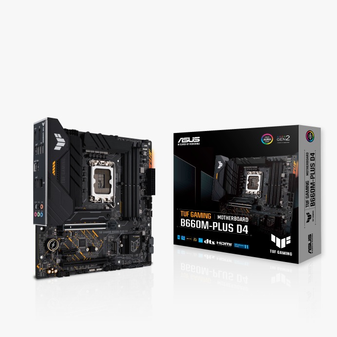 ASUS TUF GAMING B660M-PLUS D4 takes all the essential elements of the latest Intel® processors and combines them with game-ready features and proven durability. Engineered with military-grade components, an upgraded power solution and a comprehensive cooling system, this motherboard offers rock-solid and stable performance for marathon gaming. Aesthetically, TUF GAMING B660M-PLUS D4 sports the new TUF Gaming logo and incorporates simple geometric design elements to reflect the dependability and stability that defines the TUF Gaming series.