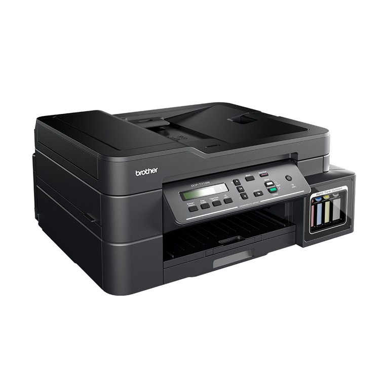 Model - Brother DCP-T710W, Functions - Print, Scan, Copy, Printer Type - Multifunction Color INK Printer, Output Color - Color, First Page Print - 8sec (B), 14sec (C), Print Speed PPM (Black) - 27ppm (Draft), 12ppm (ISO), Print Speed PPM (Color) - 10ppm (ISO), 23ppm (Draft), Print Resolution (Pixel) - 6000 x 1200dpi, Duplex Print - Manual, Scan Speed - 3.35spp (B), 4.38spp (C), Scan Resolution (Pixel) - 1200 x 2400dpi, Scan Paper Size - A4, Letter, Duplex Scan - Manual, Copy Speed - 6ipm (B & C), Copy Resolution (Pixel) - 1200 x 1200dpi (Print), 1200 x 600dpi (Scan), Paper Size Minimum - A6, Paper Size Max. - Legal, Print Paper Size - A4, Legal, Folio, Executive, Letter, A5, A6, Envelopes (Com-10, DL, C5, Monarch), Photo (10 x 15 cm), Photo 2L (13 x 18 cm) and Index Card (13 x 20 cm), Paper Type - Plain, Inkjet (coated), Glossy (cast/resin), Recycled, Input Tray - 150Sheet, Output Tray - 50Sheet, ADF - Yes (20 Sheet), Printer Memory - 128MB, Display - 1 line LCD display, Interface (Built-in) - USB, WiFi, Mobile Printing - Yes (Airprint, Google Cloud Print), Borderless Printing - Yes, OS Compatibility - Windows 7, 8, 8.1, 10, Mac OS X v10.11.6, 10.12.x, 10.13.x, Consumable - BTD60BK Black (6,500 pages), BT5000C cyan (5,000 pages), BT5000M magenta (5,000 pages), BT5000Y yellow (5,000 pages), Body Color - Black, Dimensions (WxHxD) - 435 x 195 x 380mm, Weight (Kg) - 8.6Kg, Others - Technology: Inkjet, Max paper size: A4, Wi-Fi Direct: Yes, Weights: 64-220gsm (Standard tray), Scanner type: CIS, Energy Star environmental accreditation: Yes, Duplex Copy: Manual, Part No - DCP-T710W, Warranty - 1 year, Country of Origin - Japan, Made in/ Assemble - Philippine