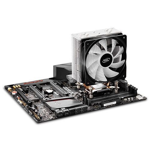 The Deepcool GAMMAXX GT CPU Cooler with Synchronized RGB all-aluminum housing and fan are synchronized to present amazing lighting effects simultaneously. This GAMMAXX GT Cooler Easily controlled RGB lighting system with a wire controller or RGB software on a compatible motherboard (such as ASUS Aura). GAMMAXX GT CPU Cooler can also Optimized mounting kit with enhanced backplate and clips for easy installation and improved durability. in addition, Deepcool GAMMAXX GT CPU Cooler features Solid 0.5-mm fins & 4 heatpipes for highly efficient heat transfer. 120 mm RGB fan with vibration-eliminating rubber pad and PWM for low-noise operations. The GAMMAXX GT CPU Cooler Supports mainstream Intel & AMD platforms.