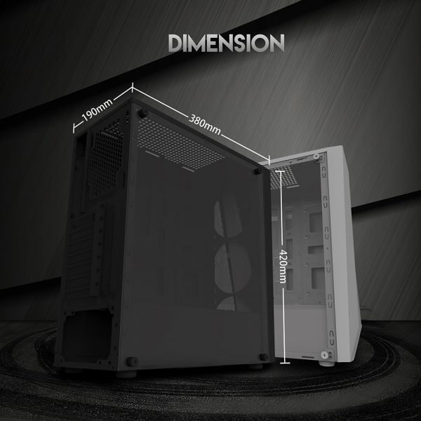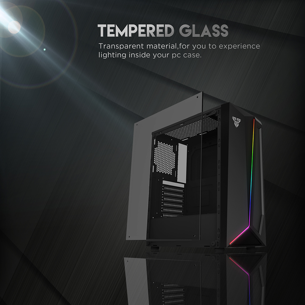 ●︎ 15 RGB Spectrum Mode ●︎ Supports up to 8 RGB fans ●︎ Extreme heat transfer and light ●︎ Case Cable ●︎ Tempered Glass ●︎ 280mm VGA Card Length ●︎ 1 3.0 USB, 2 2.0 USB Front Port ●︎ 165 mm CPU Height ●︎ 2*SSD, 2*HDD Internal Driver Bays ●︎ Supports ATX; Mini ITX; Micro ITX motherboard |
