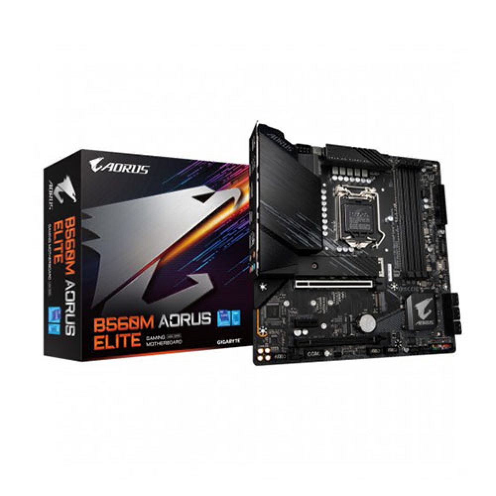 The Gigabyte B560M AORUS ELITE Motherboard From Gigabyte. Gigabyte B560M AORUS ELITE Motherboard supports 11th and 10th Gen Intel Core Series Processors. Gigabyte B560M AORUS ELITE Motherboard has Dual Channel Non-ECC Unbuffered DDR4, 4 DIMMs. Gigabyte B560M AORUS ELITE Motherboard features direct 12+1 Phases Digital VRM with Low RDS(on) MOSFETs. It has Shielded Memory Routing for Better Memory Overclocking. It comes with a Fully Covered Thermal Design with High Coverage MOSFET Heatsinks. Gigabyte B560M AORUS ELITE Motherboard is powered by a fast 2.5GbE LAN with Bandwidth Management. It supports Dual Ultra-Fast NVMe PCIe 4.0/3.0 x4 M.2 with Thermal Guard It comes with Rear USB 3.2 Gen2 Type-C and Front USB3.2 Gen1 Type-C for Connecting Devices. Gigabyte B560M AORUS ELITE Motherboard has pre-installed IO Shield for Easy and Quick Installation. RGB FUSION 2.0 with Multi-Zone Addressable LED Light Show Design, Support Addressable LED & RGB LED Strips. Smart Fan 6 Features Multiple Temperature Sensors, Hybrid Fan Headers with FAN STOP. Q-Flash Plus Update BIOS without Installing the CPU, Memory, and Graphics Card. Gigabyte B560M AORUS ELITE Motherboard has a 3 Years Warranty.Direct 12+1 Phases Digital VRM Solution with Low RDS(on) MOSFETCleaner and more efficient power delivery to the CPU with better thermal performance ensure stability under high CPU frequencies and heavy loading.ADVANCED THERMAL SOLUTIONB560M AORUS uses high performance Fully Covered thermal design with high coverage MOSFET Heatsinks and thick thermal pad, providing ultimate MOSFET cooling performance for enthusiasts, overclockers and gamers.